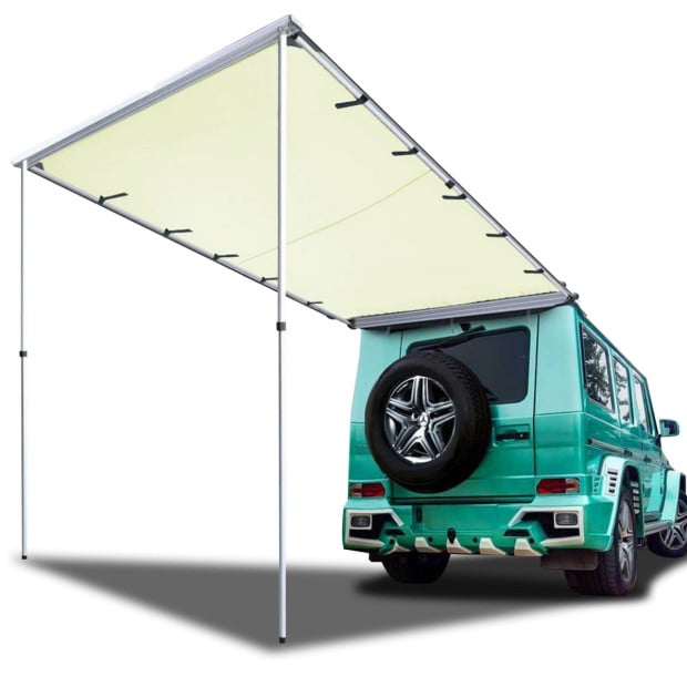 You'll never need to suffer the sun's rays beating down on you again. And on rainy days, you'll stay dry under the 2000mm water pressure-proof material. When not in use, the Car Side Awning is stored in a nylon reinforced 1000D PVC brown and grey bag.