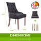 Elegant Labella - AMOURE French Provincial dining Chair, giving it a timeless look. It's a little something extra that is eye-catching and gives your home a little different style. Made with high resilience foam, provides the perfect 13cm thick cushioned seat for all those dinners and parties. Elegant upholstered deep tufting dining chair, with brass studding on the side adding a beautiful detail when tucked in under your table.