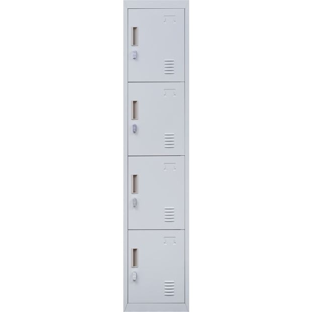 Four vertically-stacked lockers provide a good amount of room for small personal belongings, purses, textbooks, office supplies, and much more. This comes comes with padlock-operated lock to ensure safety of your items.