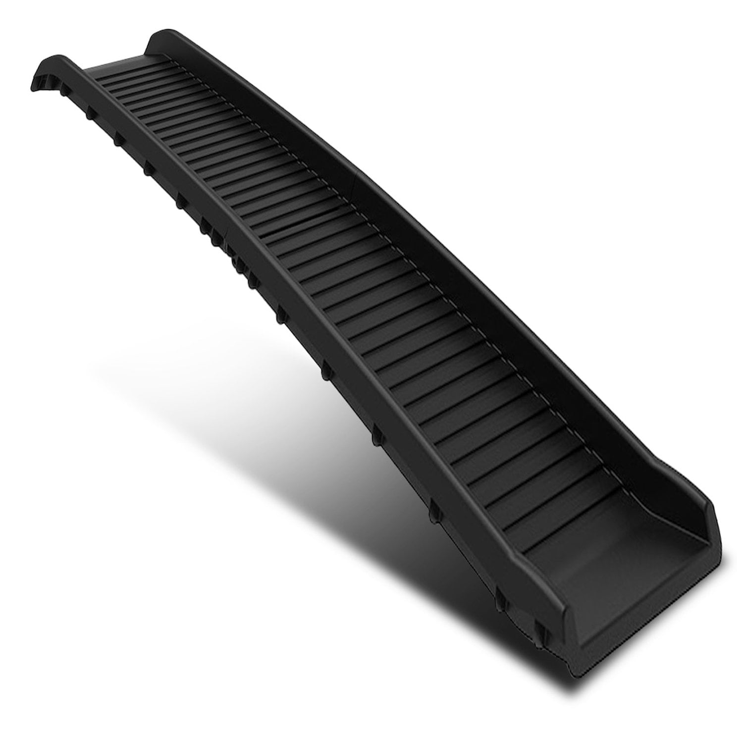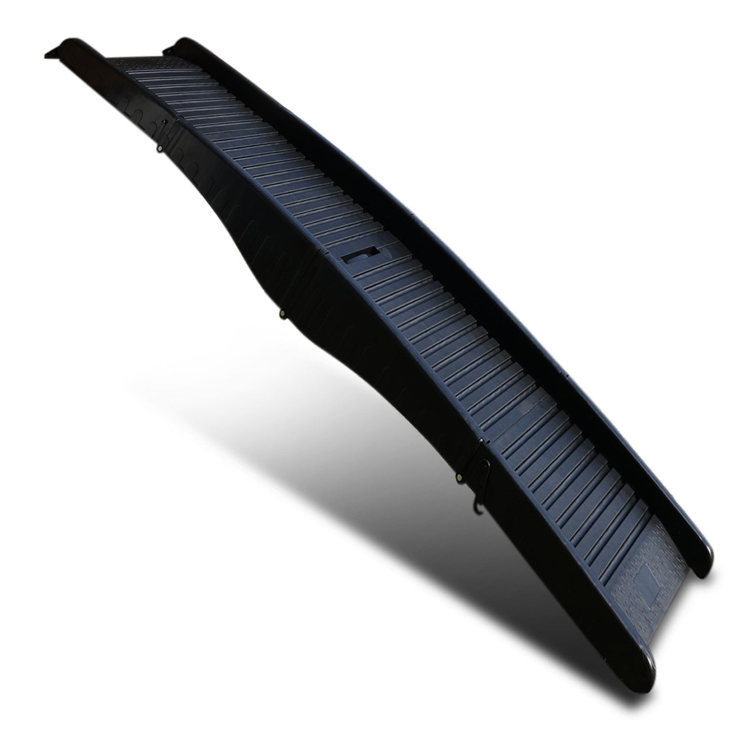Anti-skid surface ensures that your pet has proper footing and stability while getting in and out. This durable ramp folds into half for easy transportation and has a handle for easy carry. It features a safety latch which prevents against accidental unfolding.