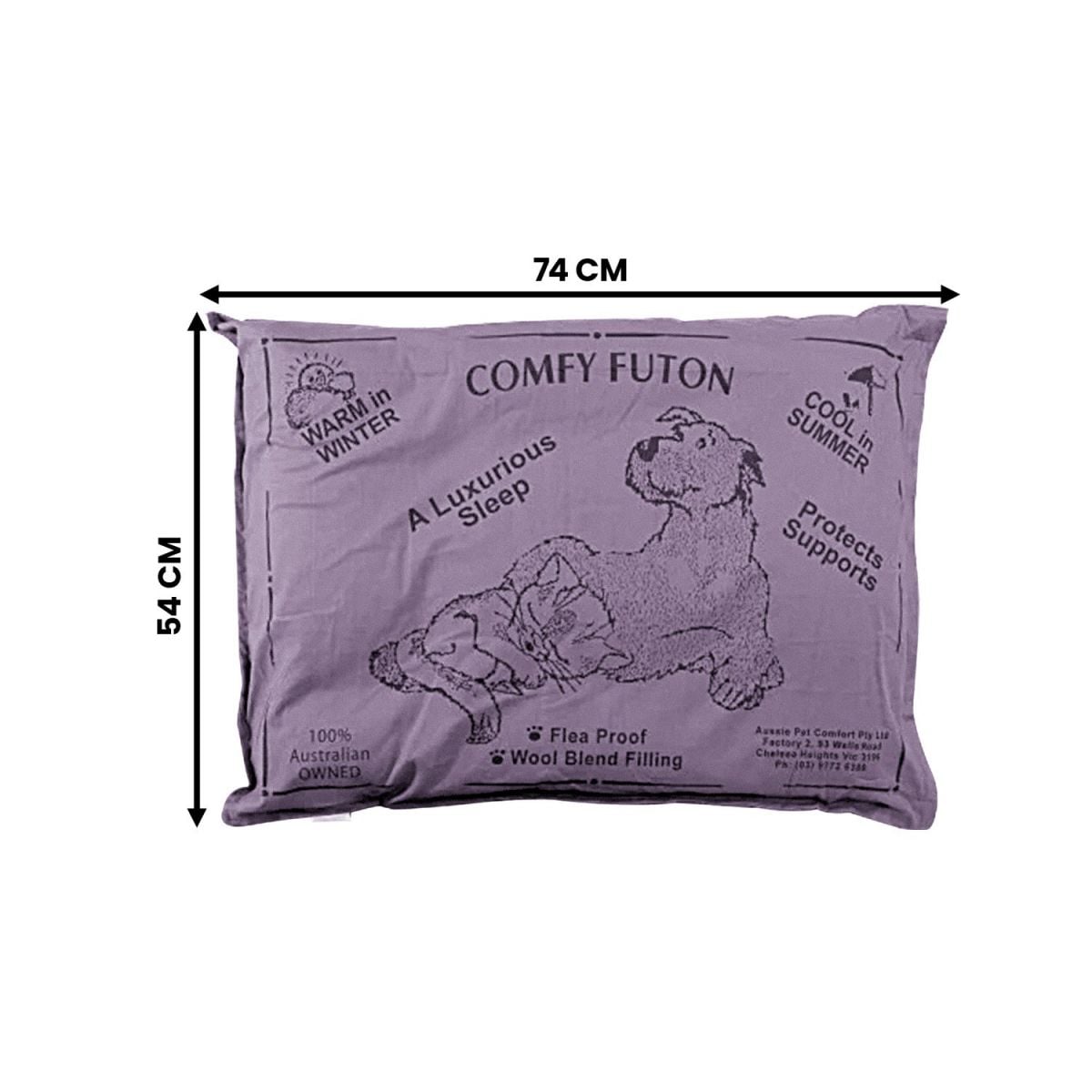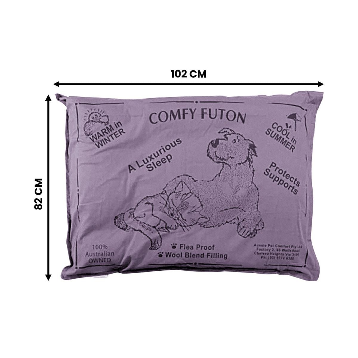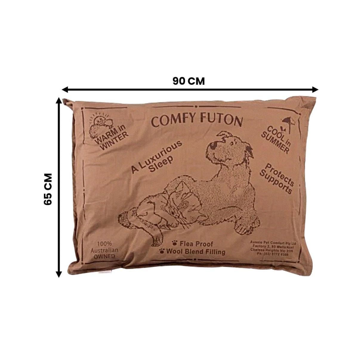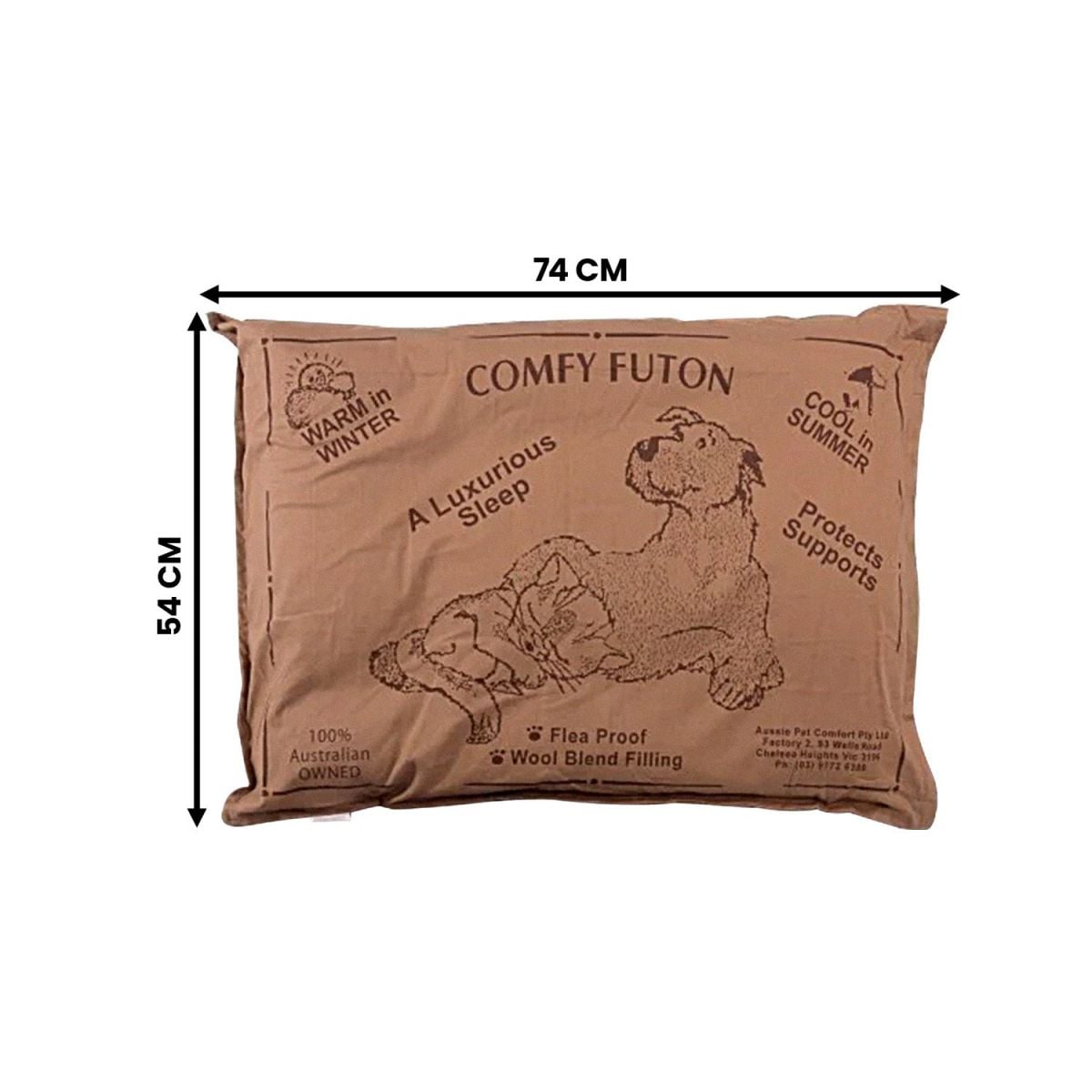 Aussie Made Comfy Pet Futon Dog 102cm Wool Blend Large - Brown
