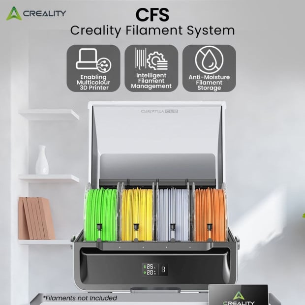 Bring your 3D prints to life with vibrant, multi colour designs using the Creality Filament System, a smart upgrade for various Creality series of printers. Featuring a dedicated extruder with precision control, an integrated cutter and a run out sensor, it ensures seamless filament changes and consistent print quality. Quick connect CFS compatibility with auto RFID recognition allows smooth material switching, boosting workflow efficiency.