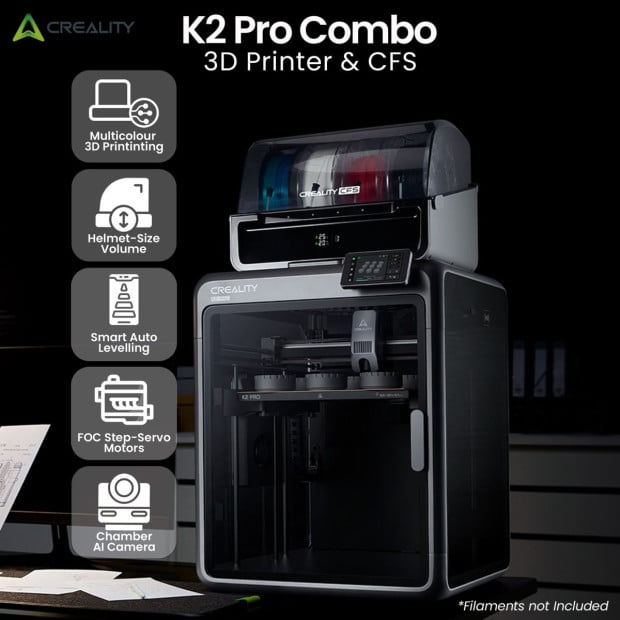 Creativity knows no limits with the K2 Pro Combo, a 3D printer designed to turn ambitious ideas into colourful reality. The K2 Pro Combo pairs seamlessly with the CFS system for up to 16 colour printing with automatic filament identification, moisture proof storage and intelligent feeding. A spacious 300×300×300mm build volume, 600mm/s high speed performance and stable 60°C chamber heating make it ready for advanced materials and ambitious builds. Dual AI cameras provide real time monitoring and flow optimisation, while auto levelling, a hardened direct drive extruder and WiFi/LAN control ensure every print is consistent, clean and effortlessly managed.