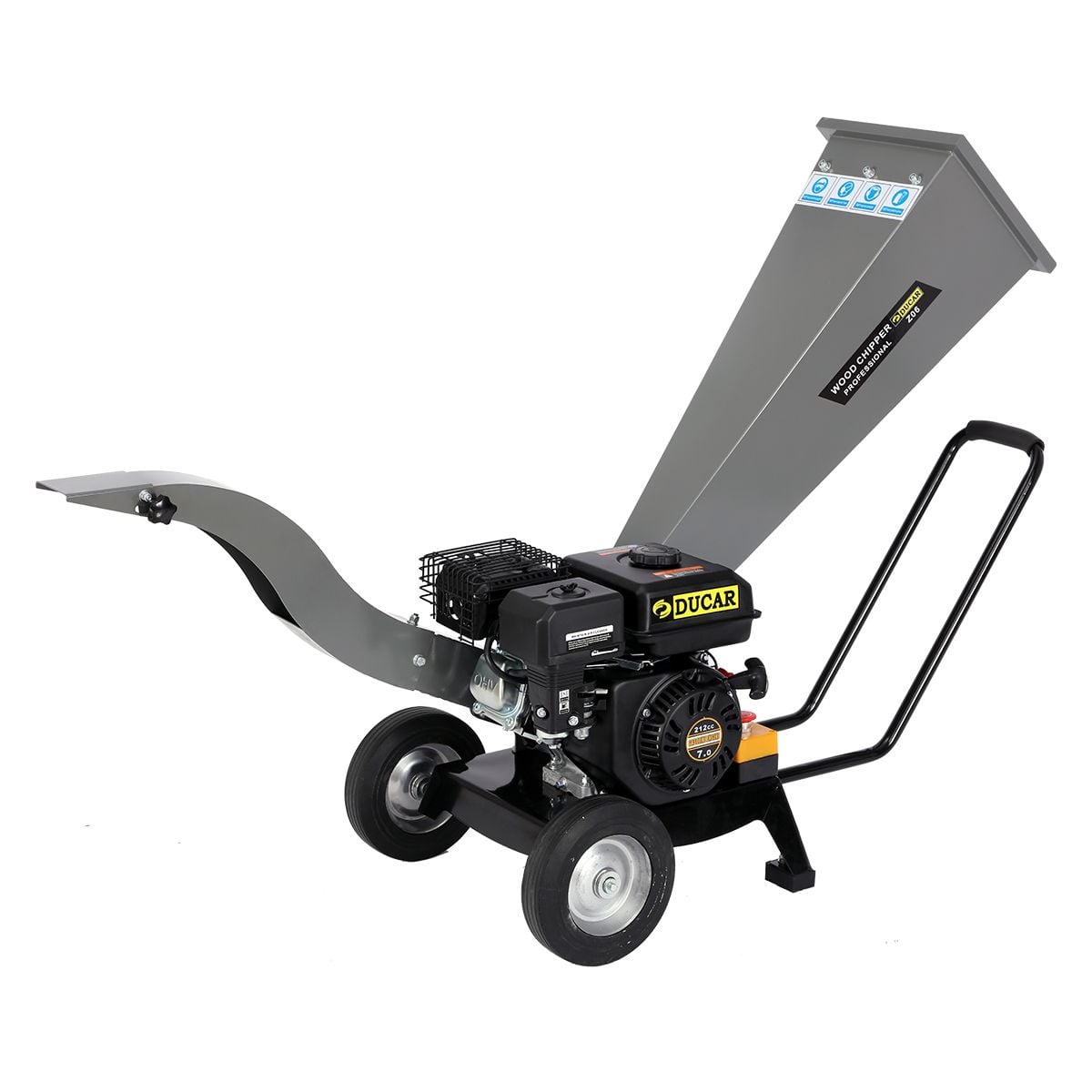 This Ducar wood chipper shredder offers incredible performance in a surprisingly compact package. The unit is powered by an easy-starting and powerful 212cc engine, strong enough to chip branches up to three inches in diameter.