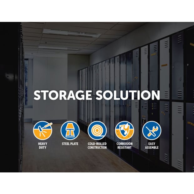 The locker is constructed with solid cold-rolled steel plate for excellent sturdiness and durability, not to mention an attractive look. The steel is also powder-coated to resist corrosion. The locker measures 180 x 76 x 45 cm, and the maximum recommended weight capacity is approximately 30kg per locker. Privacy and security are assured with a simple lock and key design. There are spaces designated for labels to help identify lockers, and air vents are built-in to assure sufficient ventilation.