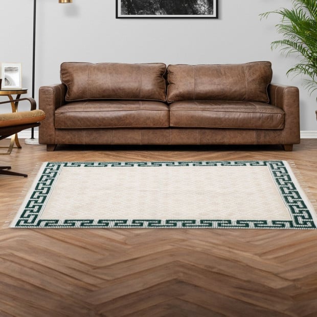 Greek-Inspired Wool Rug 165 Cream and Green Product Description: