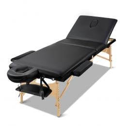 75cm Portable Wooden Massage Table 3 Fold Treatment Black