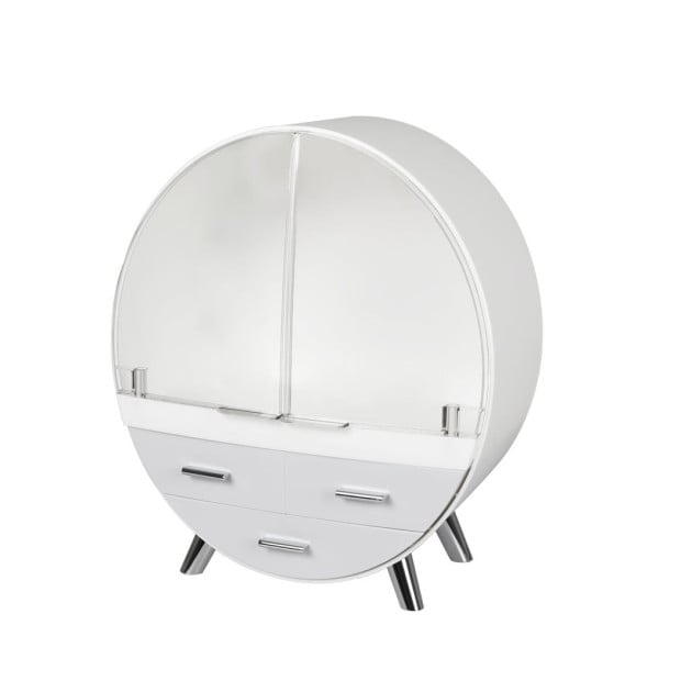 Slide out the drawers in your vanity case. Store jewelry and brushes in the drawers. Keep your lipstick mascara and other makeup in the tall top section. Keep your counter clear. Keeping all your beauty products tidy is no easy task.