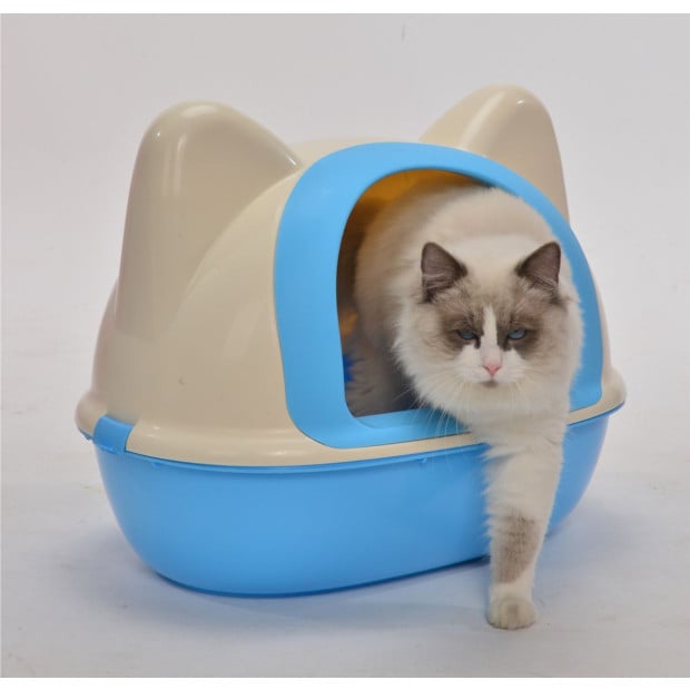 Medium Hooded Cat Toilet Litter Box Tray House With Scoop Blue Product Description: