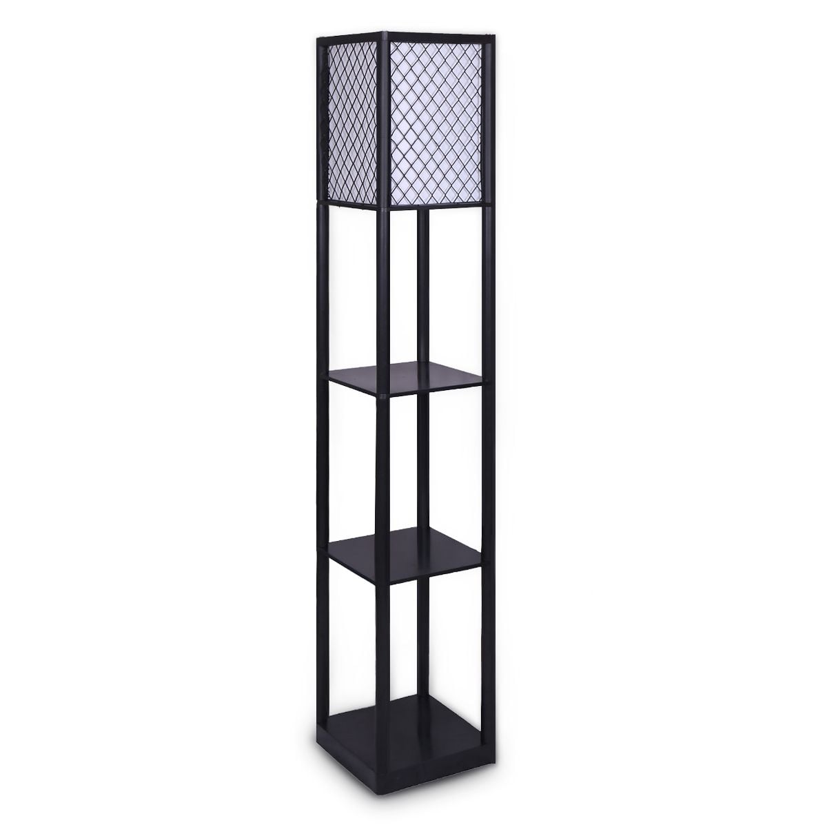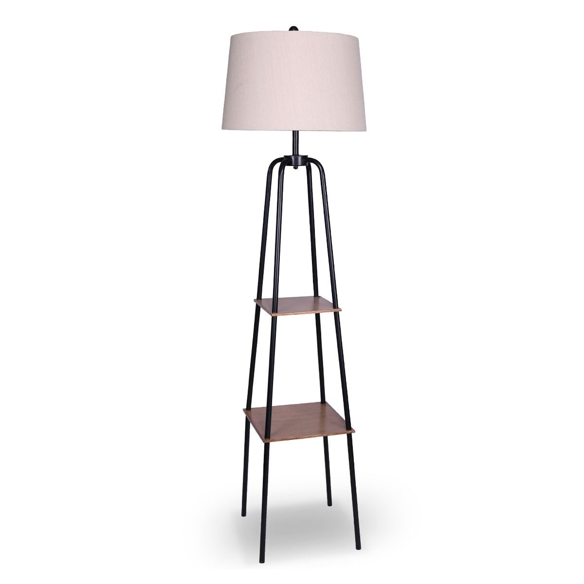 The floor lamp comes with two wood-finish shelves made of metal - the same material as the lamp's legs. It lets you enjoy the rustic look of wood while getting the longevity and durability of metal for an all-around excellent purchase.
