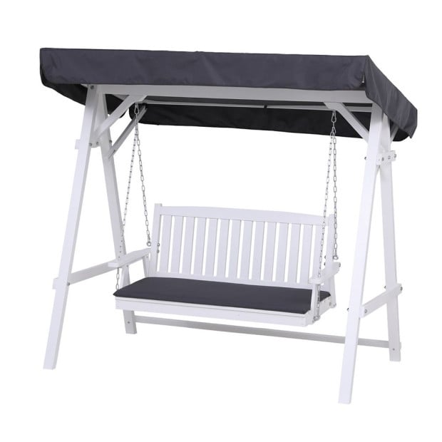 Outdoor Wooden Swing Chair Garden Bench Canopy Cushion 3 Seater White