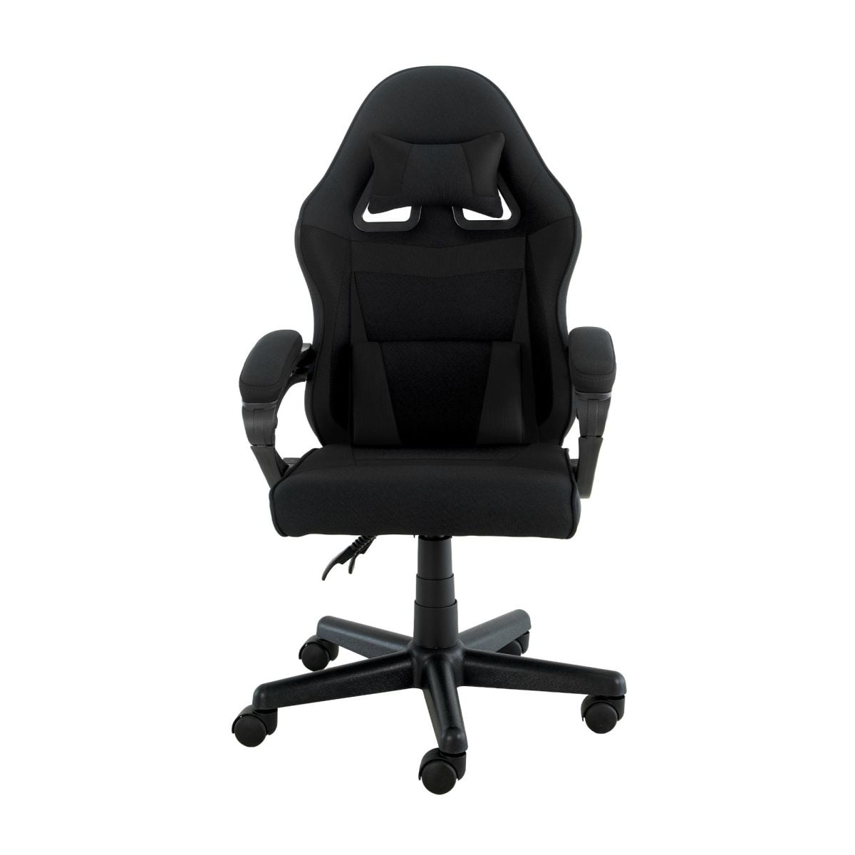 Level up your setup with a chair that keeps pace. The Antre Study Gaming Chair blends high-performance design with ergonomic comfort, perfect for gaming marathons or long study sessions. It features a racing-inspired look, height-adjustable seat and dual tilt mechanism for relaxed reclining. Upholstered in soft, breathable fabric, it also features padded armrests, a removable headrest, and lumbar pillows for tailored support. Smooth-rolling nylon castors and a sturdy nylon base let you move freely without losing stability.