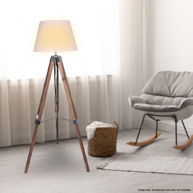 Sarantino Solid Wood Tripod Floor Lamp Adjustable Height White Shade Product Description: