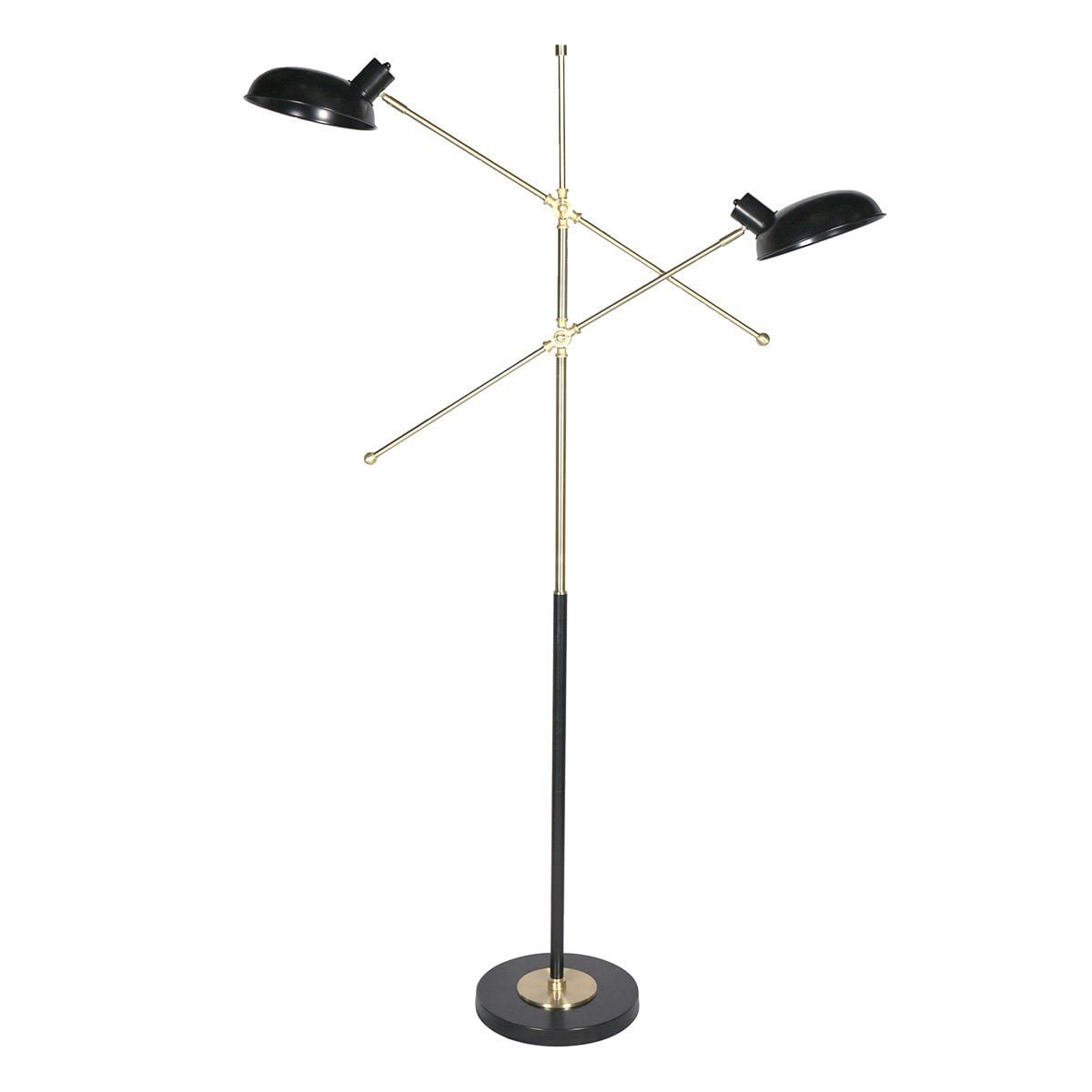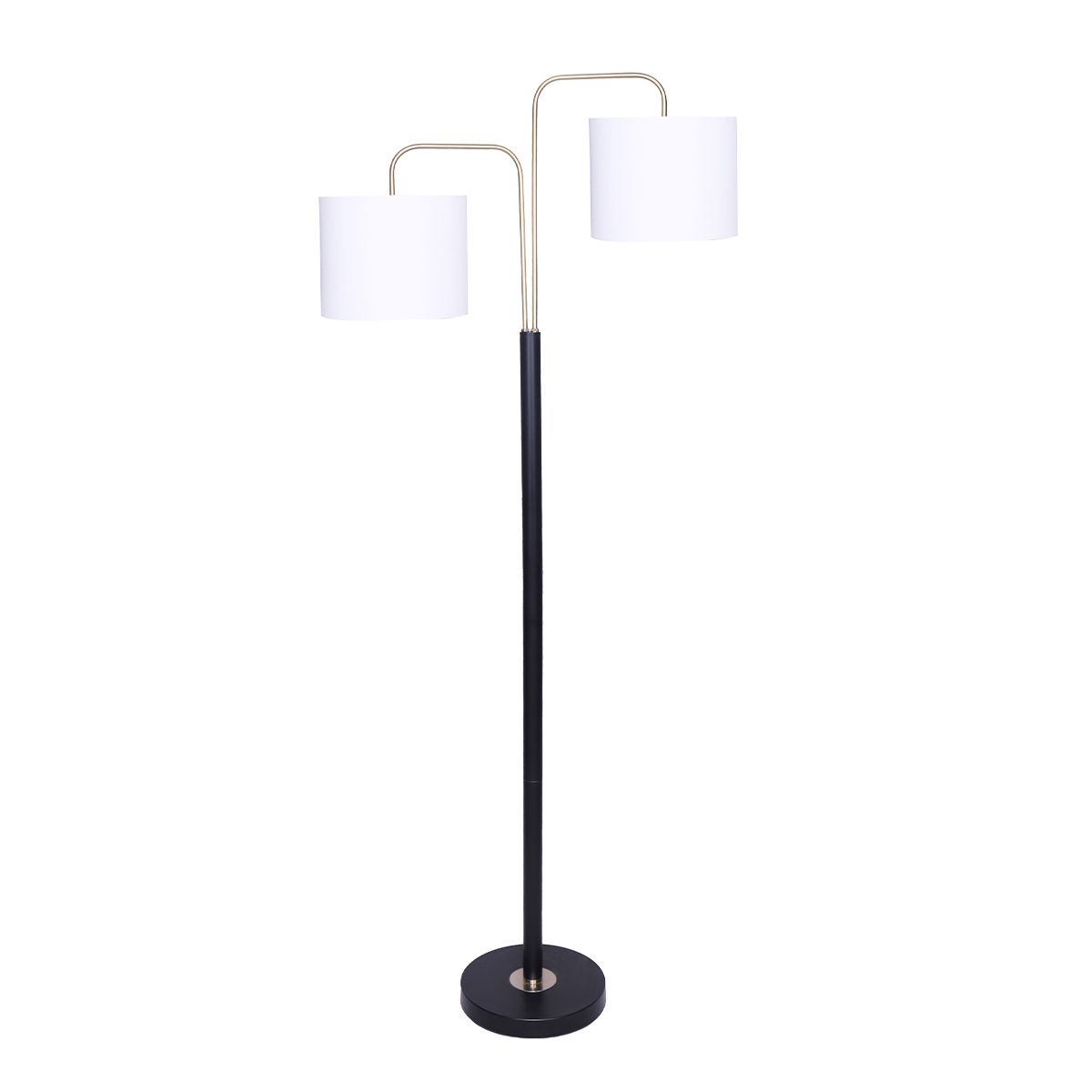 Modern, chic and versatile, this trio floor lamp is perfect for most living spaces. It features three brass poles secured in a round base with three black tapered metal shades that offer different lighting angles.