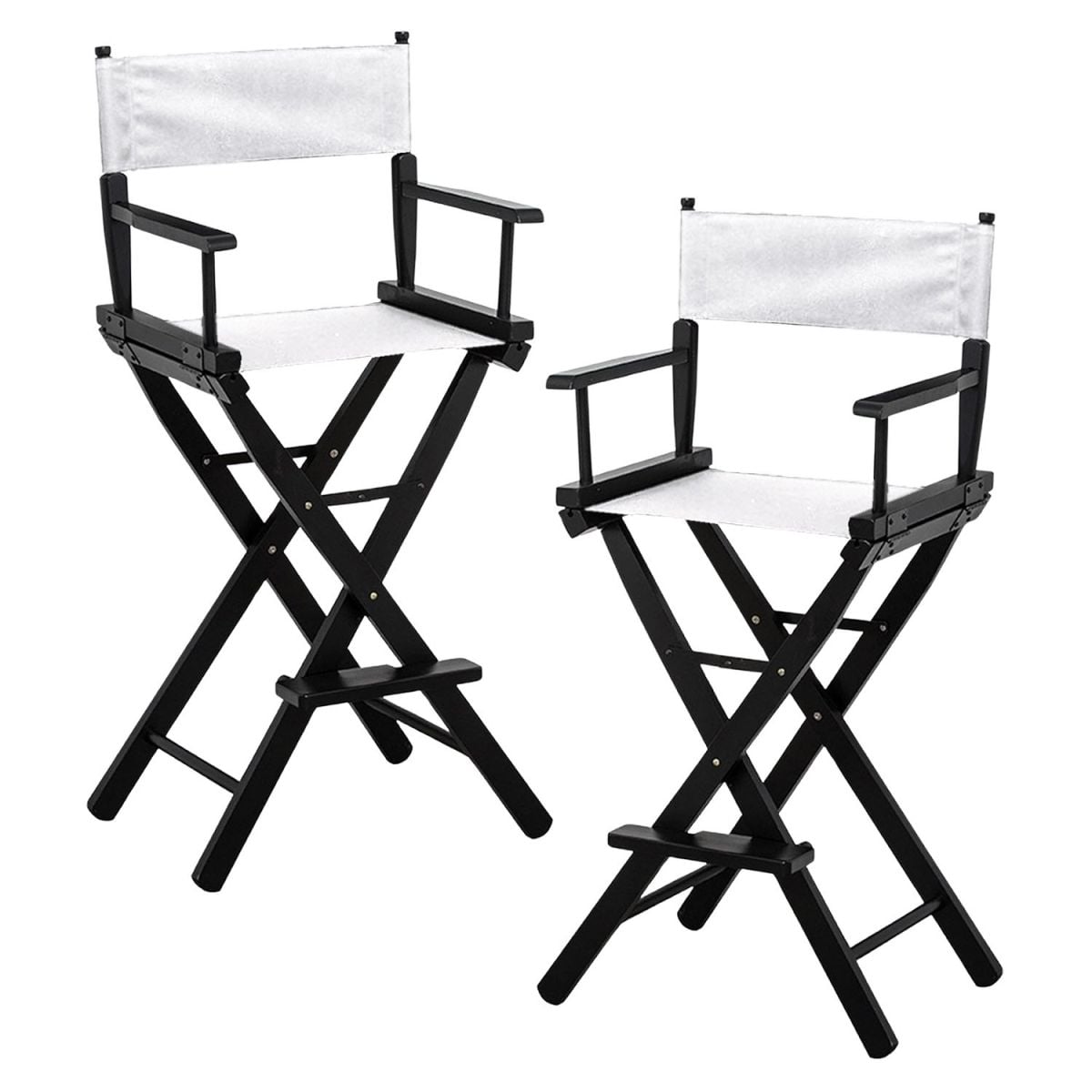 Sarantino White Tall Directors Chair Beech Wood Frame with Canvas Seat
